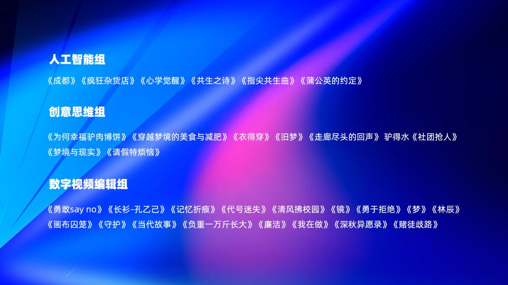 本次活动最为珍贵的收获,并非仅仅在于作品的最终呈现,更在于整个过程中所激发的思想碰撞与深度交流。我们欣喜地看到,在《人工智能生成》的前沿探索中,你们与算法对话,叩问着创作的主体性与艺术的边界;在《数字视频编辑》的叙事锤炼中,你们重构时间与影像,实践着情感的传递与观点的表达;在《设计创意思维》的系统构建中,你们从问题出发,展现了将抽象概念落地为完整方案的逻辑力量。不同课程、不同题材、不同风格的作品在此并置与对话,已然形成了一场无声却激烈的创意研讨,这本身就是教学相长最美好的体现。