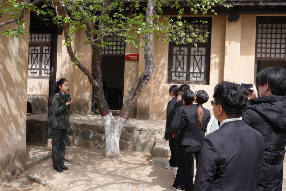 清晨抵达后,师生们在毛泽东、朱德、刘少奇、周恩来、任弼时五位书记铜像前举行庄严的缅怀仪式。全体人员整齐列队,神情庄重肃穆,手持黄、白两色菊花,依次敬献于铜像基座前,并集体三鞠躬,深切表达对革命先烈的崇高敬意。老一辈革命家曾在此指挥了决定中国命运的三大战役,孕育了伟大的西柏坡精神。随后,师生们在专业讲解员带领下参观了西柏坡纪念馆和中共中央旧址,通过珍贵的历史文物与翔实的图文资料,重温那段波澜壮阔的奋斗历程,在追思中汲取前行的精神力量。