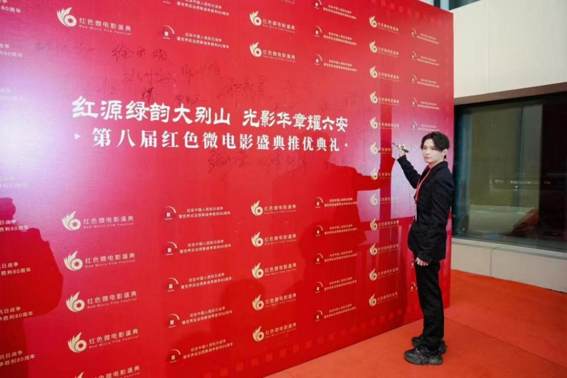 第八届中国红色微电影盛典是由中共安徽省委网信办、安徽省文化和旅游厅、安徽省电影局、中国电影家协会、六安市人民政府、安徽广电传媒产业集团共同主办,中共六安市委宣传部、六安市文化和旅游局、金寨县人民政府、安徽电影集团承办。此次盛典以”红源绿韵大别山 光影华章耀六安”为主题,汇聚全国影视创作者、行业专家、媒体代表及各界观众近800人,共同见证红色光影的荣耀时刻。袁泽北同学获主竞赛微电影单元“优秀作品”奖,是我院开展课堂思政教育的重要体现,也是我院深切落实OBE教学理念,及学校“把学生推向舞台上,把舞台搭在社会上”办学理念的重要成果。
