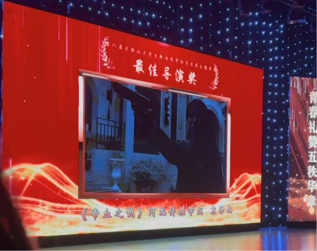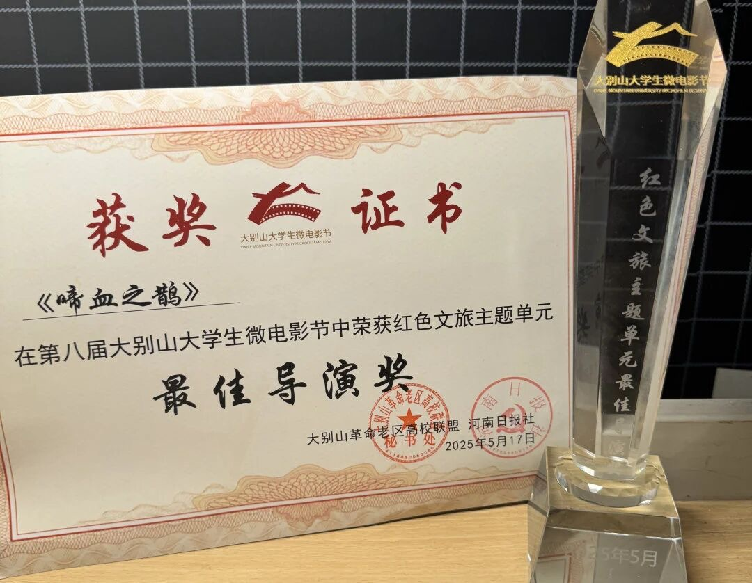 2025年12月25日,在刚刚落幕的第八届中国红色微电影盛典中,我院2023级数字媒体艺术1班的袁泽北同学所带领剧组创作的微电影作品《啼血之鹊》,从众多高校和影视公司作品中脱颖而出,于主竞赛微电影单元荣获“优秀作品”奖。此次获奖是袁泽北同学凭该作品继2025年5月17日获得第八届大别山大学生微电影节“红色文旅”单元“最佳导演”奖后,再度斩获的重要国家级奖项。