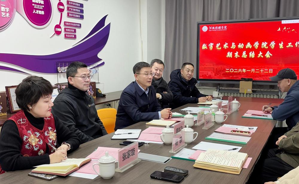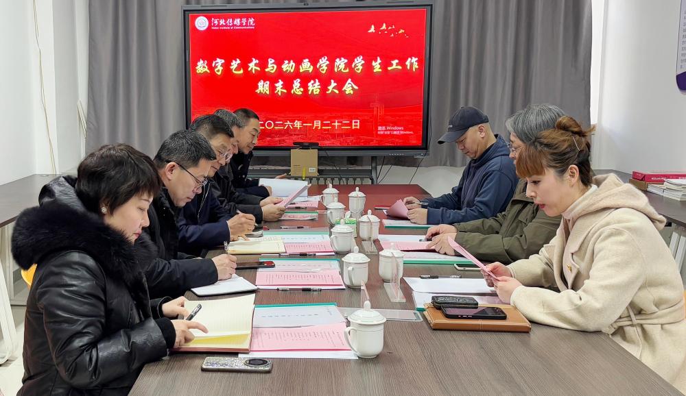 2026年1月22日下午,数字艺术与动画学院“锚定信心,勇于开创——共谱学院高质量发展的‘学工密码’”学生管理工作总结汇报会于艺设楼416会议室隆重召开,不仅对年度工作进行了一次详细梳理和复盘,更对下一阶段工作提出了思路,指明了方向。