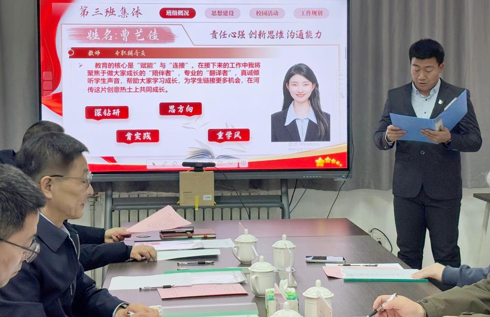 汇报环节亮点纷呈,四位年级组长杜路广、邢丽、牛兰兰、徐路伟分别以《与学生同频,与教育共振》《夯实基础,协同推进》《坚守本心,履职笃行》《凝心聚力,协同育人》为题进行了精彩汇报,他们用鲜活的案例生动讲述了各年级在思想引领、学风建设、管理服务、成长护航等方面的扎实举措与丰硕成果,充分展现了学工队伍深耕一线、以生为本的育人温度与专业厚度。
